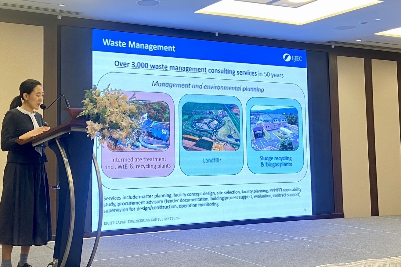 From EJEC, Ms. Kotoe Kuroda in the Environment and Energy Division, International Department, gave a presentation titled "Consulting Services for Waste Management."