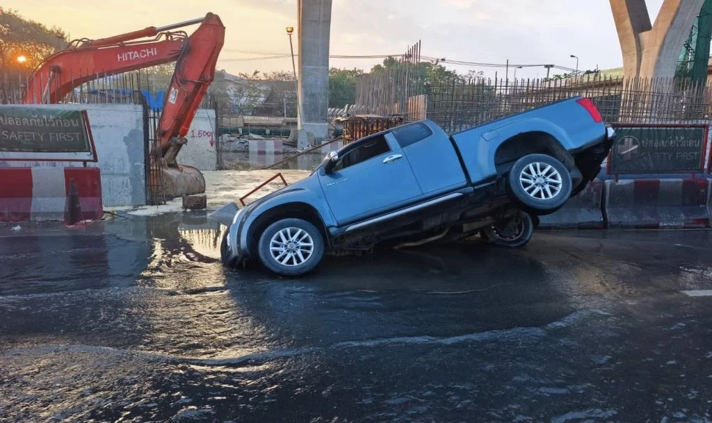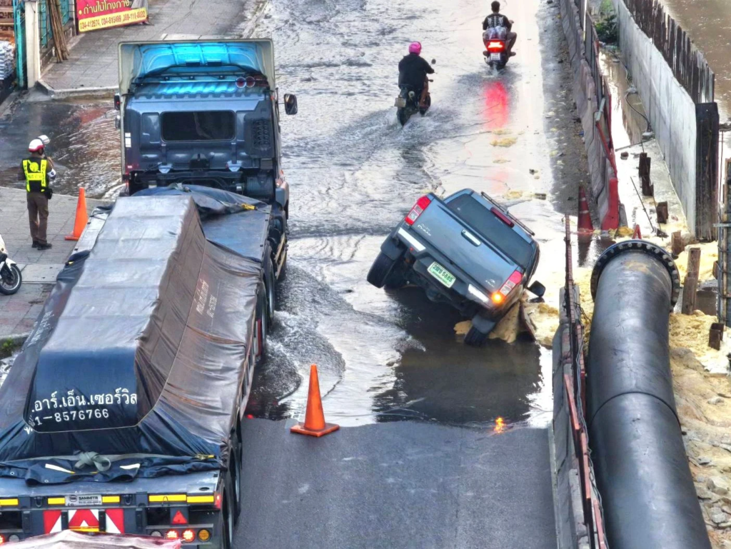 Road Collapse on Rama 2 Road After Water Pipe Burst