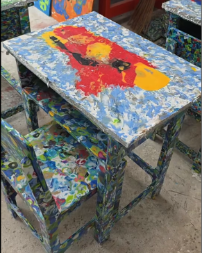 - เพื่อตอบสนองต่อปัญหานี้ ทีมงานนวัตกรรมได้ก้าวเข้ามาแก้ไขปัญหานี้โดยการเปลี่ยนขยะพลาสติกให้เป็นผลิตภัณฑ์ที่เป็นมิตรกับสิ่งแวดล้อม โครงการริเริ่มของพวกเขามุ่งเน้นไปที่การรีไซเคิลปืนฉีดน้ำพลาสติกที่ใช้แล้วให้เป็นเฟอร์นิเจอร์ที่ทนทาน อาทิเช่น โต๊ะและเก้าอี้