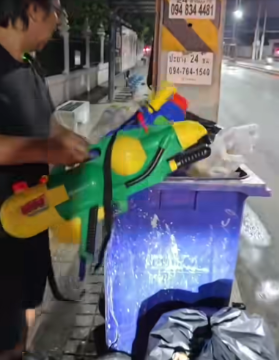 - ในขณะที่เทศกาลนี้สร้างบรรยากาศที่คึกคักไปทั่วประเทศ แต่ก็ทิ้งปัญหาด้านสิ่งแวดล้อมที่สำคัญไว้ด้วยเช่นกัน ตามถนนหนทางมักเต็มไปด้วยขยะจำนวนมาก โดยเฉพาะเศษพลาสติก เช่น ปืนฉีดน้ำที่ใช้แล้ว