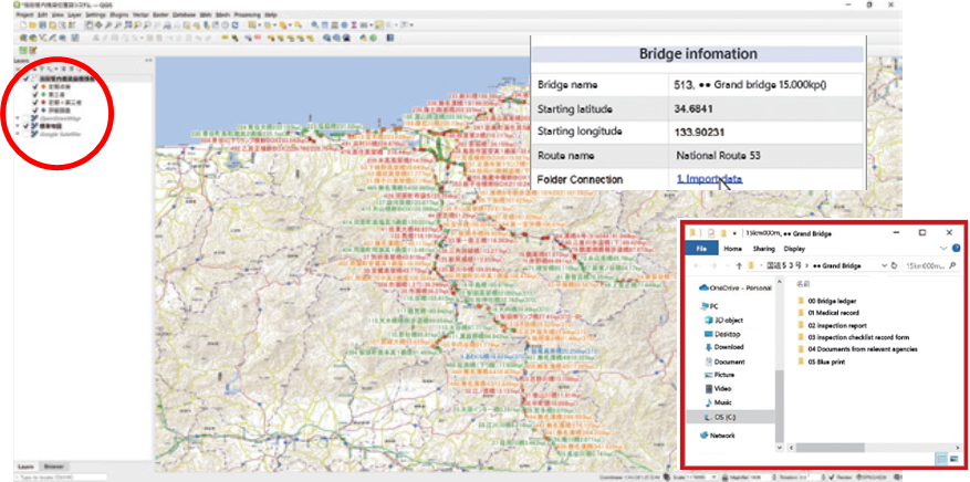 Features: - Combines infrastructure data and maps for management - Do not require high spec PCs - Map data is created using the free QGIS - Available for use in both online and offline - Easy to use by using a folder structure that can be freely customized - On-site verification of the specific infrastructure is also smooth and efficient