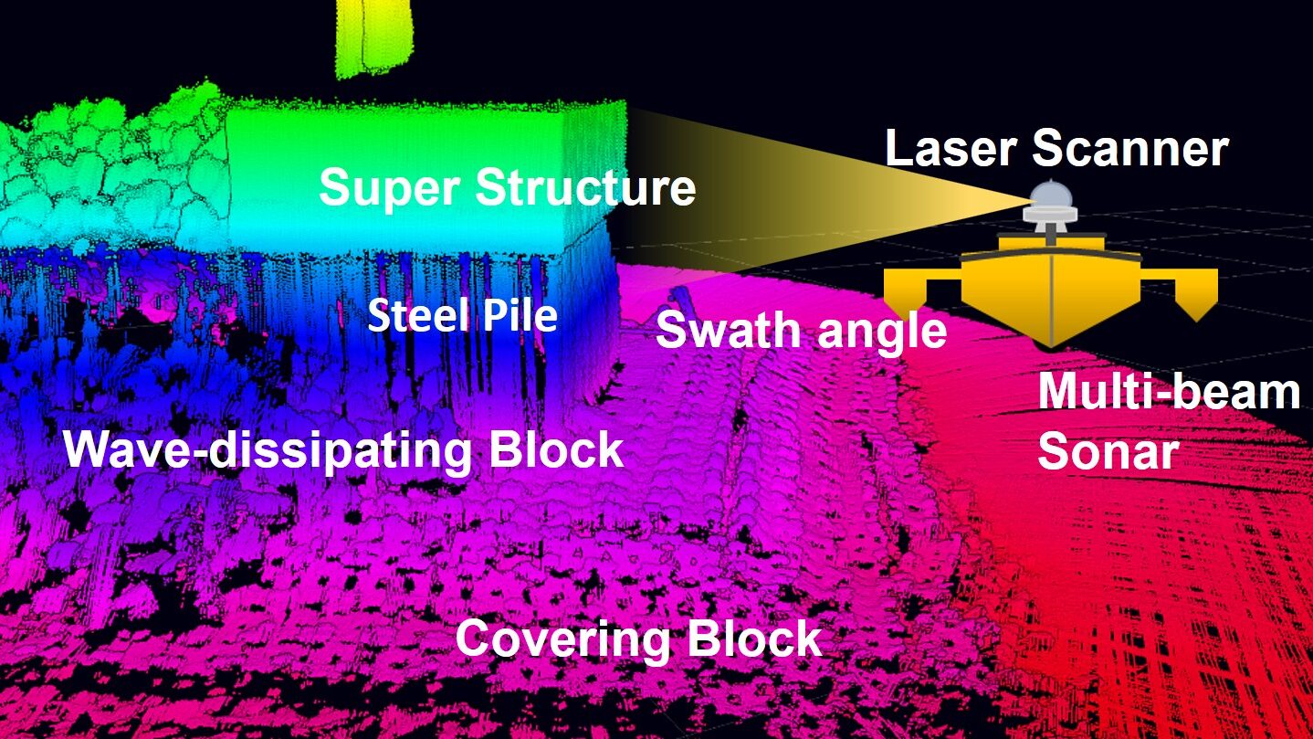 - Multi-beam sonar and laser scanner capture 3D data above and below water