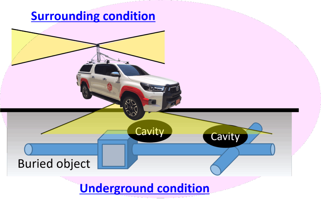 - Can detect the location & size of Road cavity, Bridge deck slab damage, buried objects, and Damage of the Road surface.